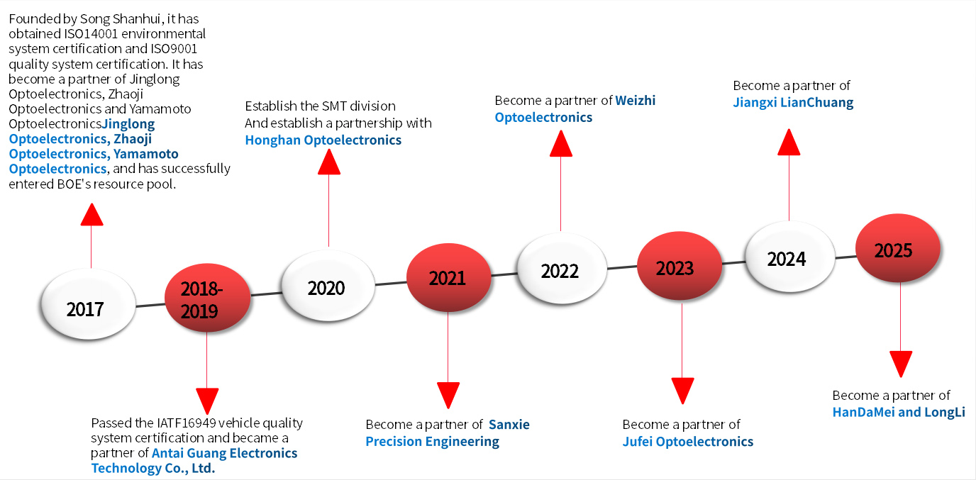Dongguan Songshanhui Electronic Technology Co., Ltd. was established in 2017. It is a high-tech enterprise specializing in the manufacturing of FPC (Flexible Printed Circuit Board). The company currently has over 260 employees, with a factory area of over 10,000 square meters, and a monthly production capacity of 35,000 square meters.